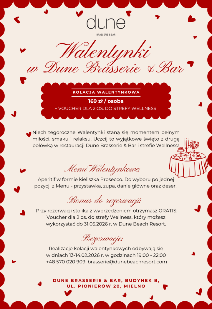 Walentynki 2026 w Dune Brasserie & Bar