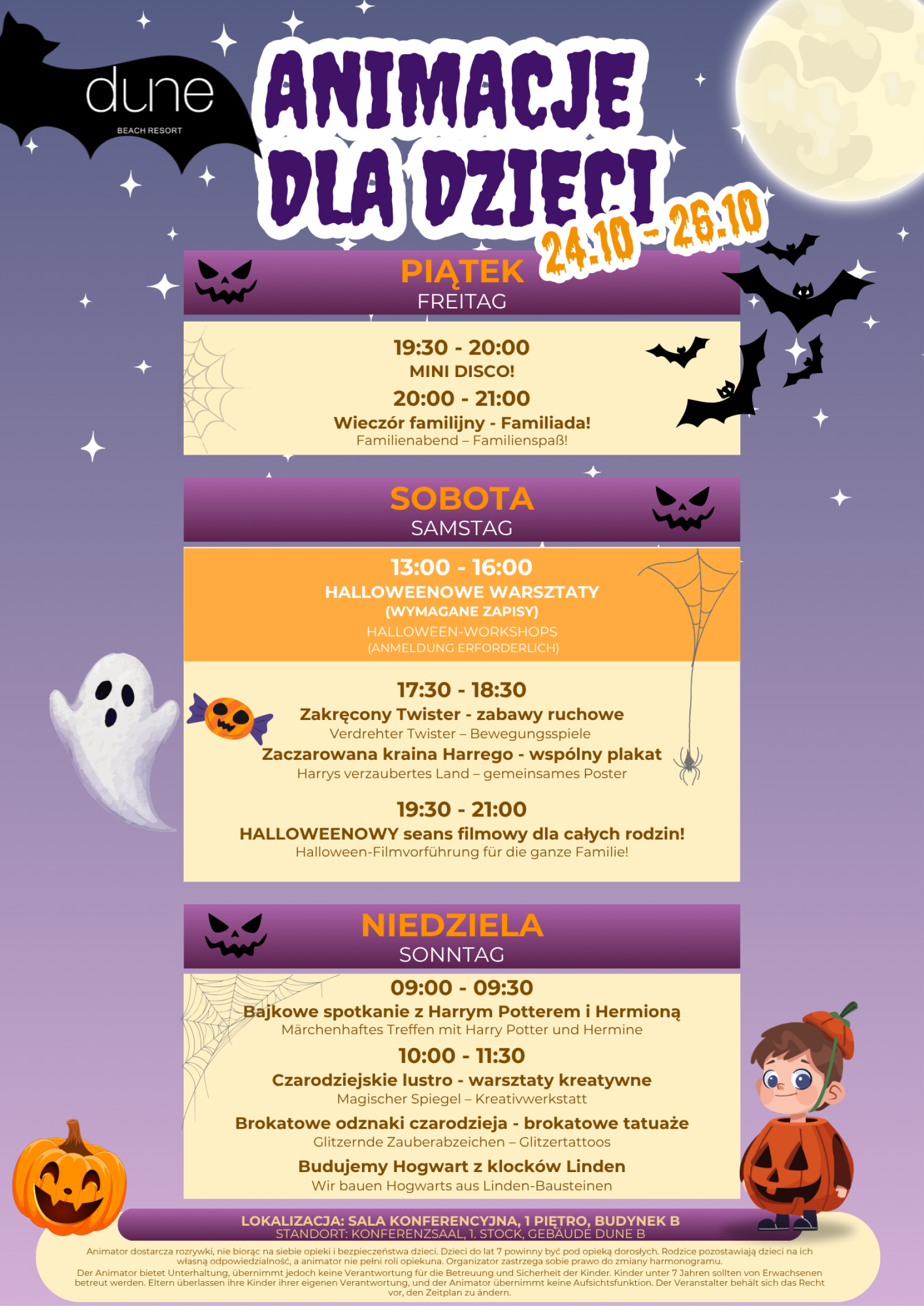 Dla naszych najmłodszych gości przygotowaliśmy specjalny Halloweenowy harmonogram animacji!
