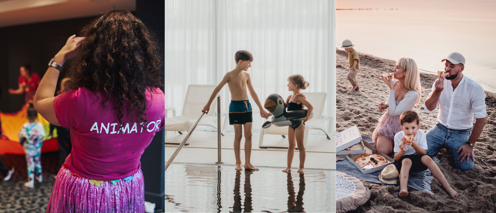 Unser Programm bietet viele verschiedene Aktivitäten, die unvergesslichen Spaß voller Freude und Lächeln garantieren. Tägliche kreative Workshops ermöglichen es den Kindern, ihre Leidenschaften und Talente zu entwickeln. Die Attraktionen, die wir anbieten, sind voller Bewegung, Tanz und Abenteuer, und die Betreuung durch einen Animator sorgt für Sicherheit. Die von uns vorbereiteten Animationen sind eine hervorragende Möglichkeit, Zeit mit der Familie zu verbringen und sich zu integrieren.