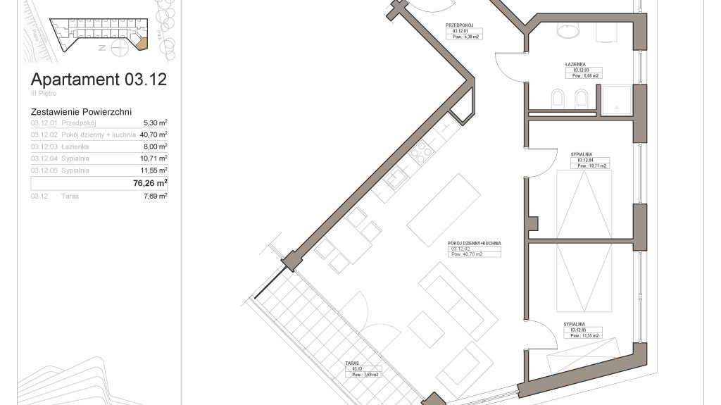 Absolutnie wyjątkowy apartament z dwiema sypialniami o powierzchni 76m2, zlokalizowany na 3. piętrze budynku Dune A.